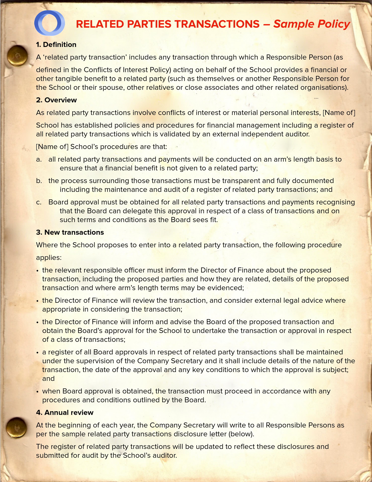 To manage related party transactions effectively, school boards must establish clear policies defining what constitutes a related party and the types of transactions that fall under scrutiny. A sample policy might look something like this: