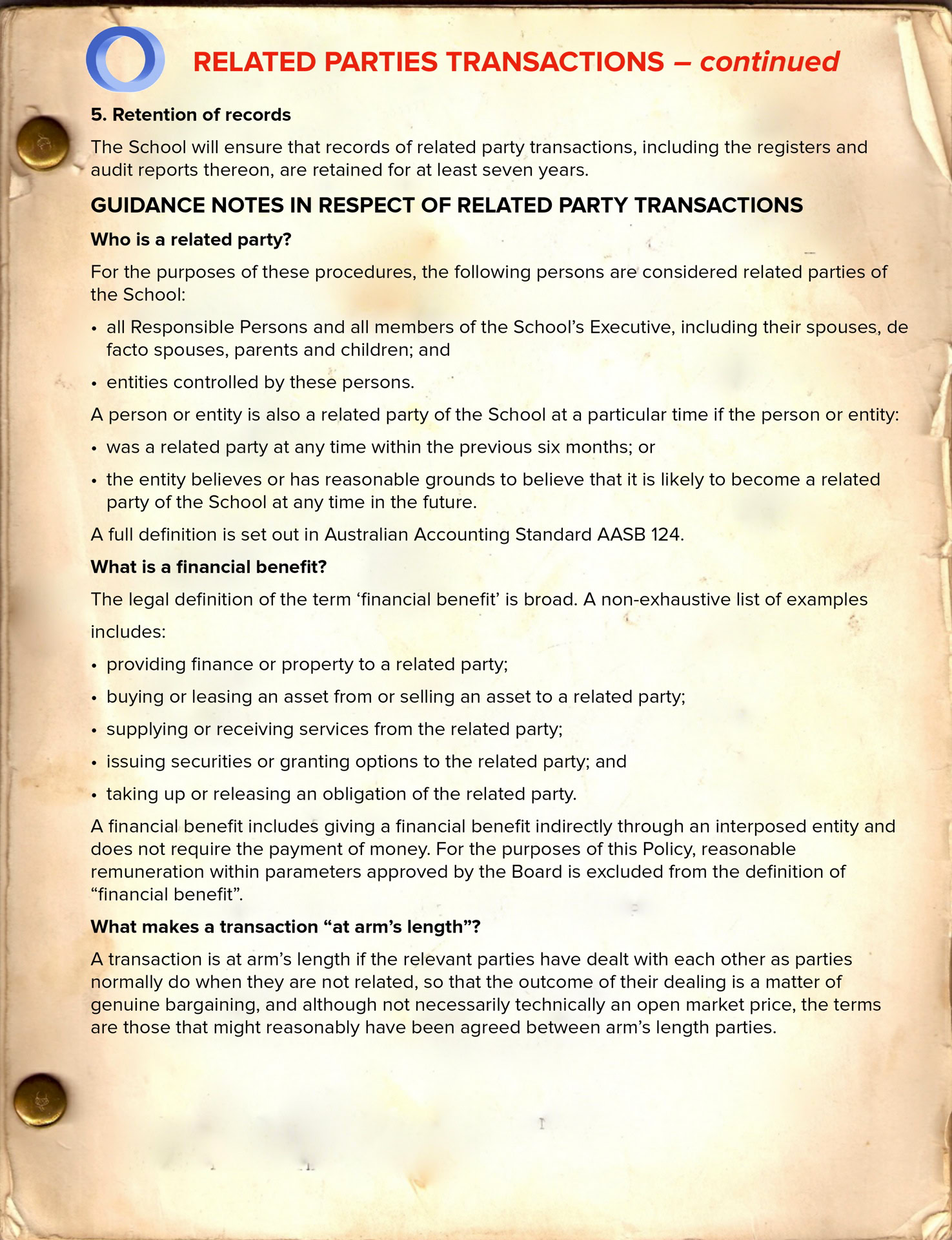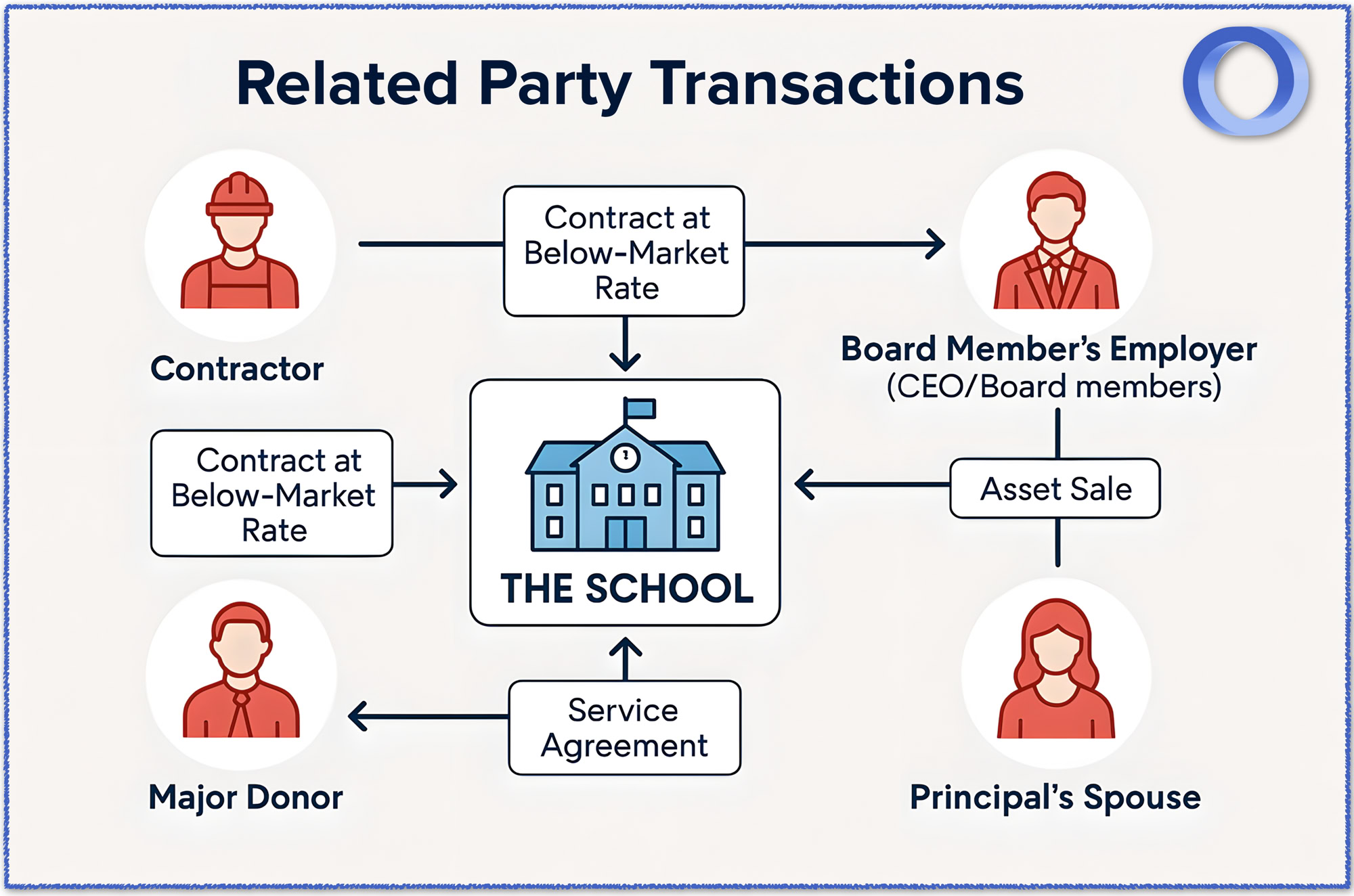 For school boards, related party transactions are agreements or arrangements between the school and individuals or organisations that have a close relationship with board members, senior managers, or staff. These transactions can include contracts for services, sales of property, or employment and other agreements involving family members or business associates. While not inherently unethical, related party transactions have to be treated sensitively and transparently because they pose a risk of perceived favouritism, reduced competition, loss of public trust and acceptance of sub-optimal arrangements that are not in the school’s best interests.