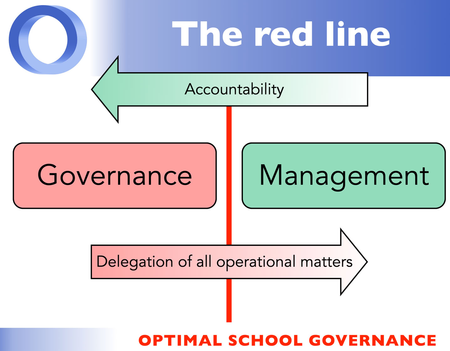 The purpose of a school board is to govern the school. The purpose of the staff and its leadership is to manage the school. The so-called Red Line that divides the roles of Governance and Management is the most basic element of sound leadership in schools – and often the least understood or most ignored.