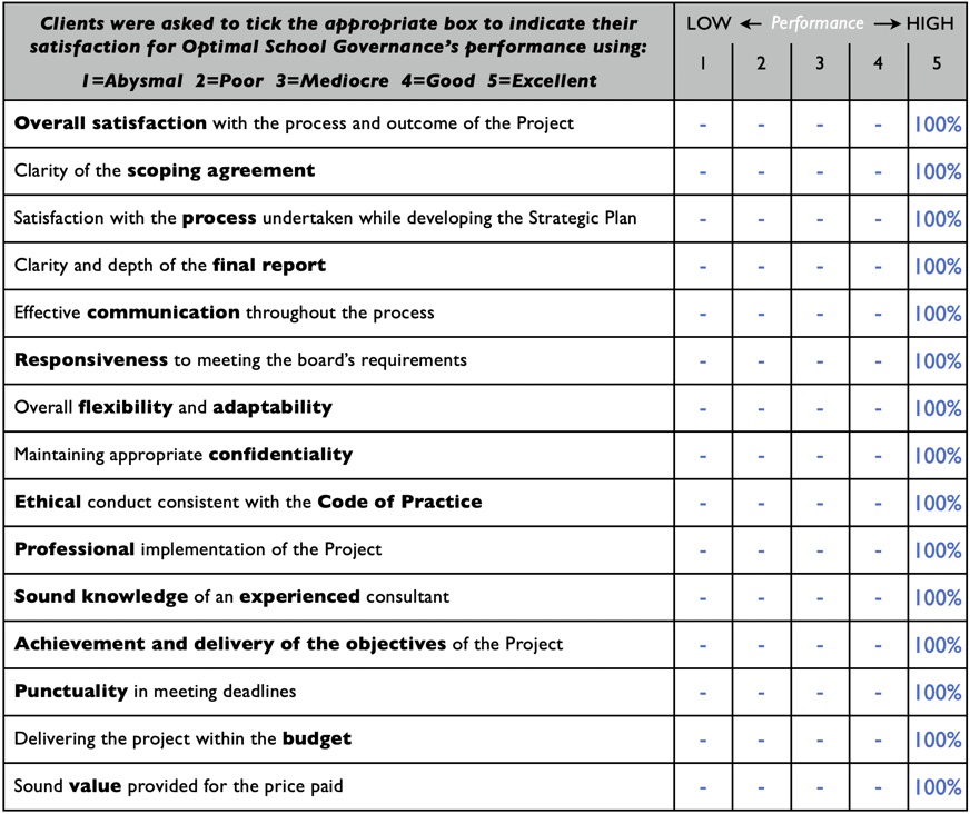 TYPICAL FEEDBACK RECEIVED BY OPTIMAL SCHOOL GOVERNANCE