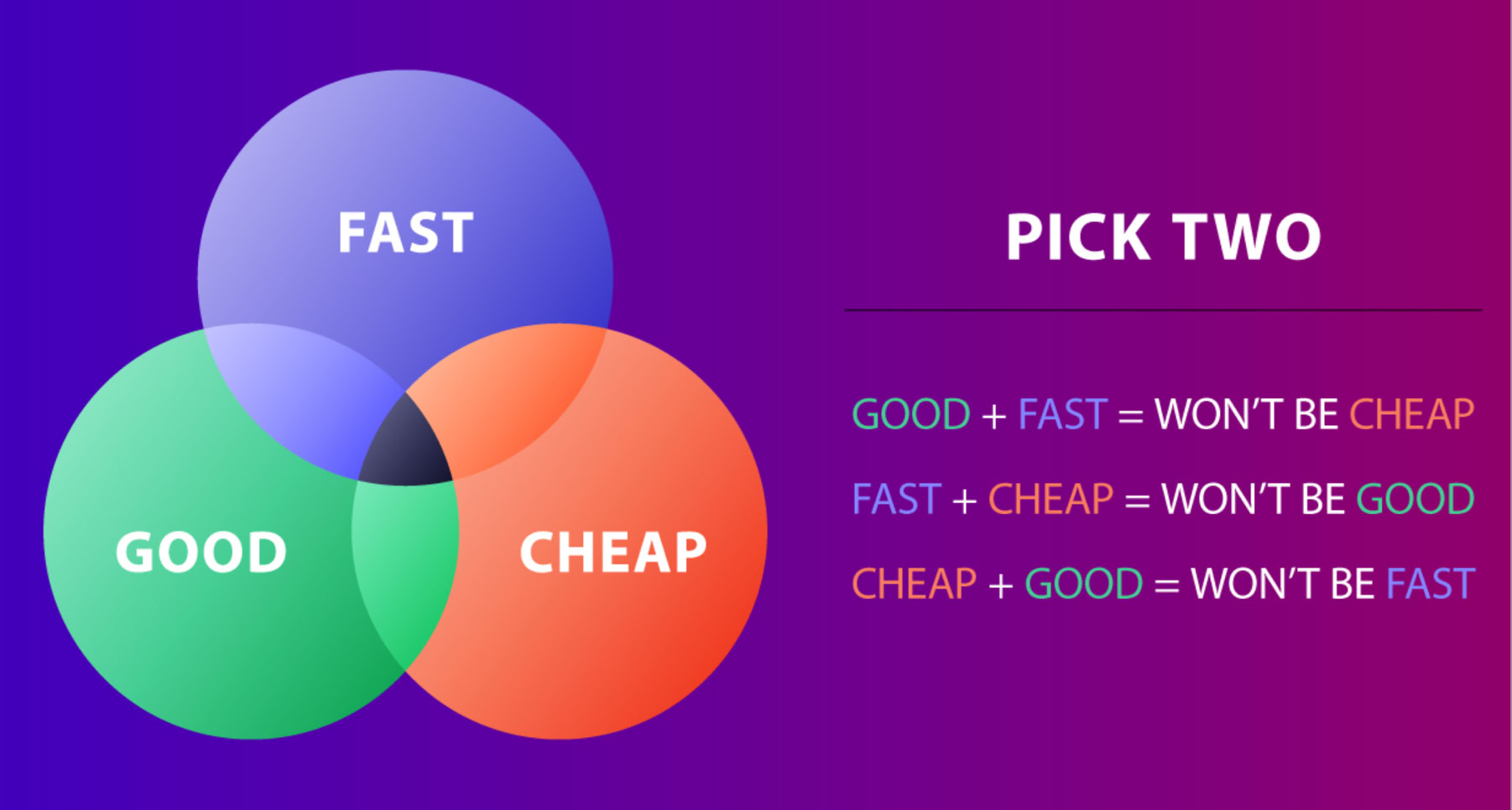 Realistically, that is an almost impossible target that is setting up the school and its new Strategic Vision for failure. As the diagram suggests, from the tripartite goal of good-fast-cheap, you have to pick two of the three.